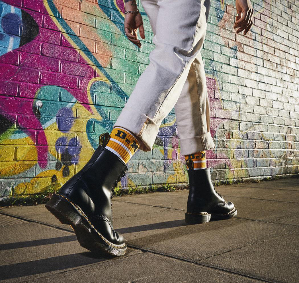 Açıklama 1460, Dr. Martens orijinal 8 delikli ikonik modeli, mat deriden üretilmiştir. PVC dış tabanı sarı dikişle sabitlenmiş ve AirWair topuk halkası ile etiketlenmiştir. Goodyear keçeli çizgiler 700˚C'de ısıyla mühürlenip keçe dikişi ile güçlendirilmiştir. 01.04.60 tarihinde üretilmesi nedeniyle modele 1460 olarak isim verilmiştir. Dayanıklı ve sağlamlığıyla ünlü olan pürüzsüz mat deri tercihinize bağlı olarak cilalanabilir veya ustaca aşındırılabilir.