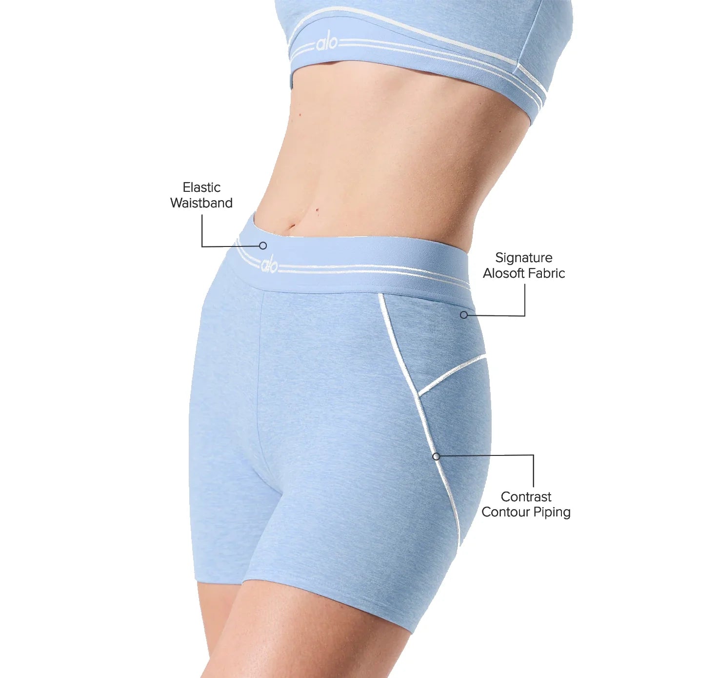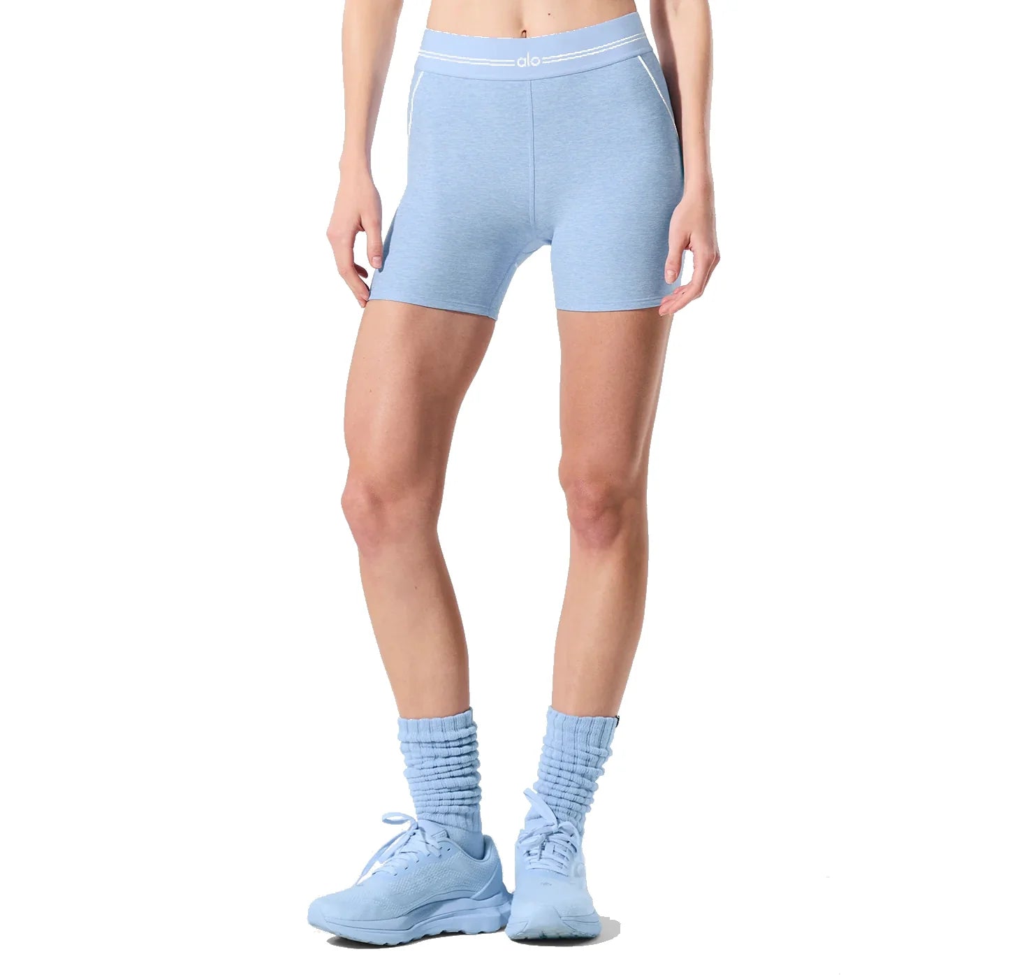 alo Women's 4” Alosoft High-Waist Heart Throb Short Seashell Blue Heather/White