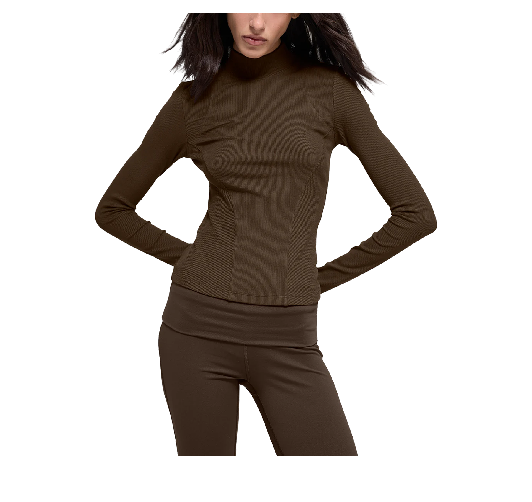 alo Women's Ribbed Mesmerize Mock Neck Long Sleeve Espresso