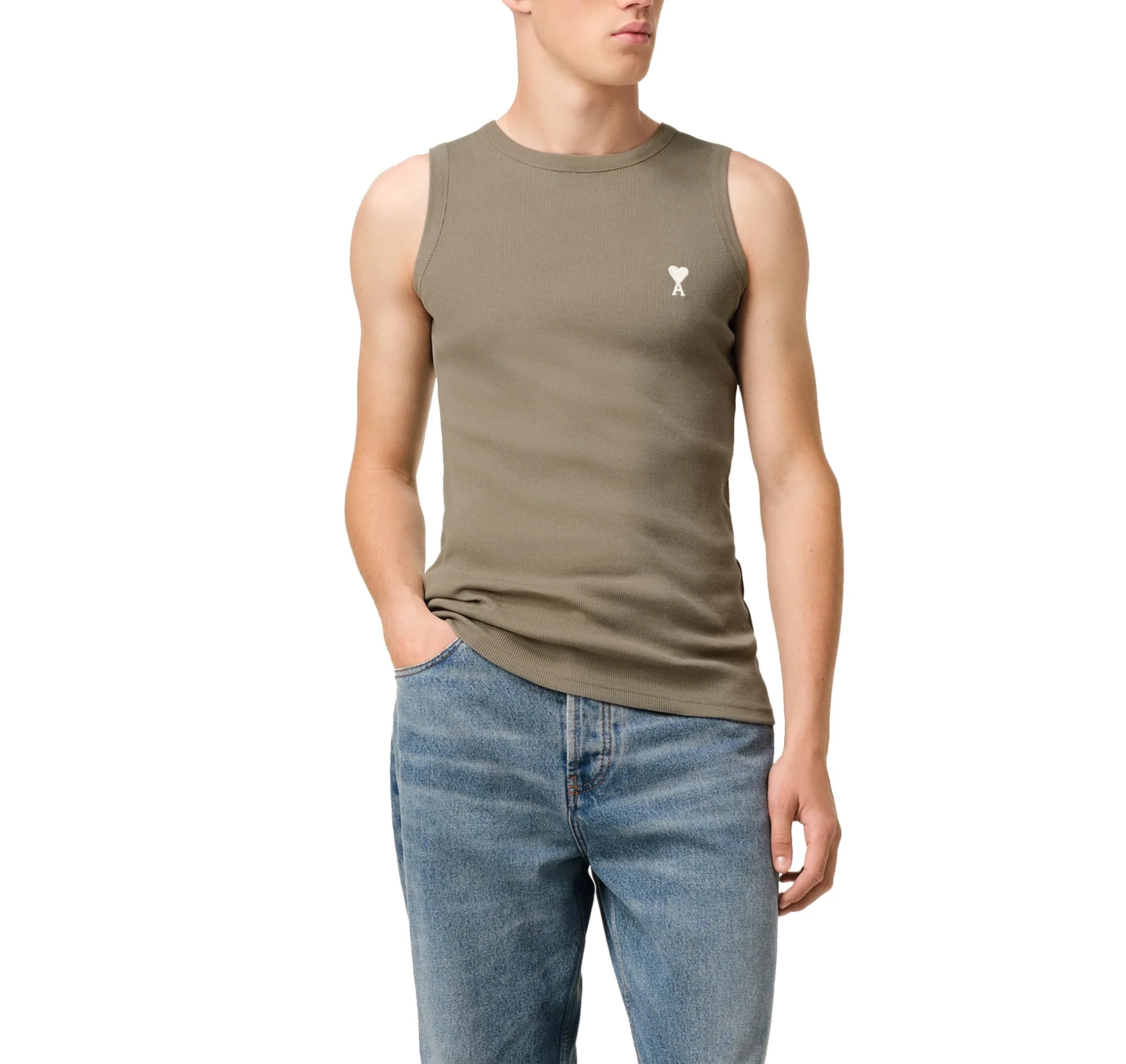 AMI Alexandre Mattiussi Unisex Rib Ami De Coeur Tanktop Laurel