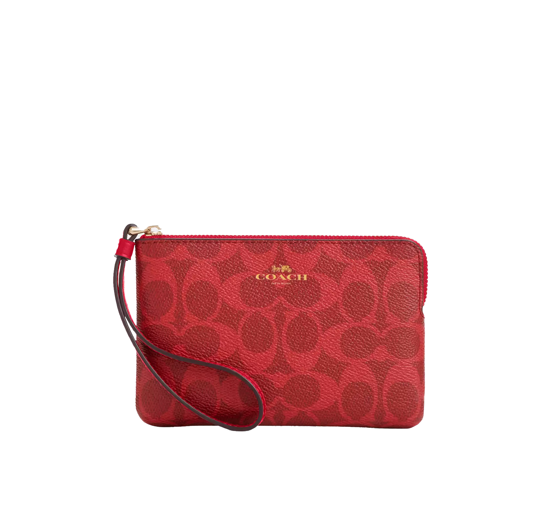 Coach Women's Corner Zip Wristlet In Signature Canvas Gold/Bold Red
