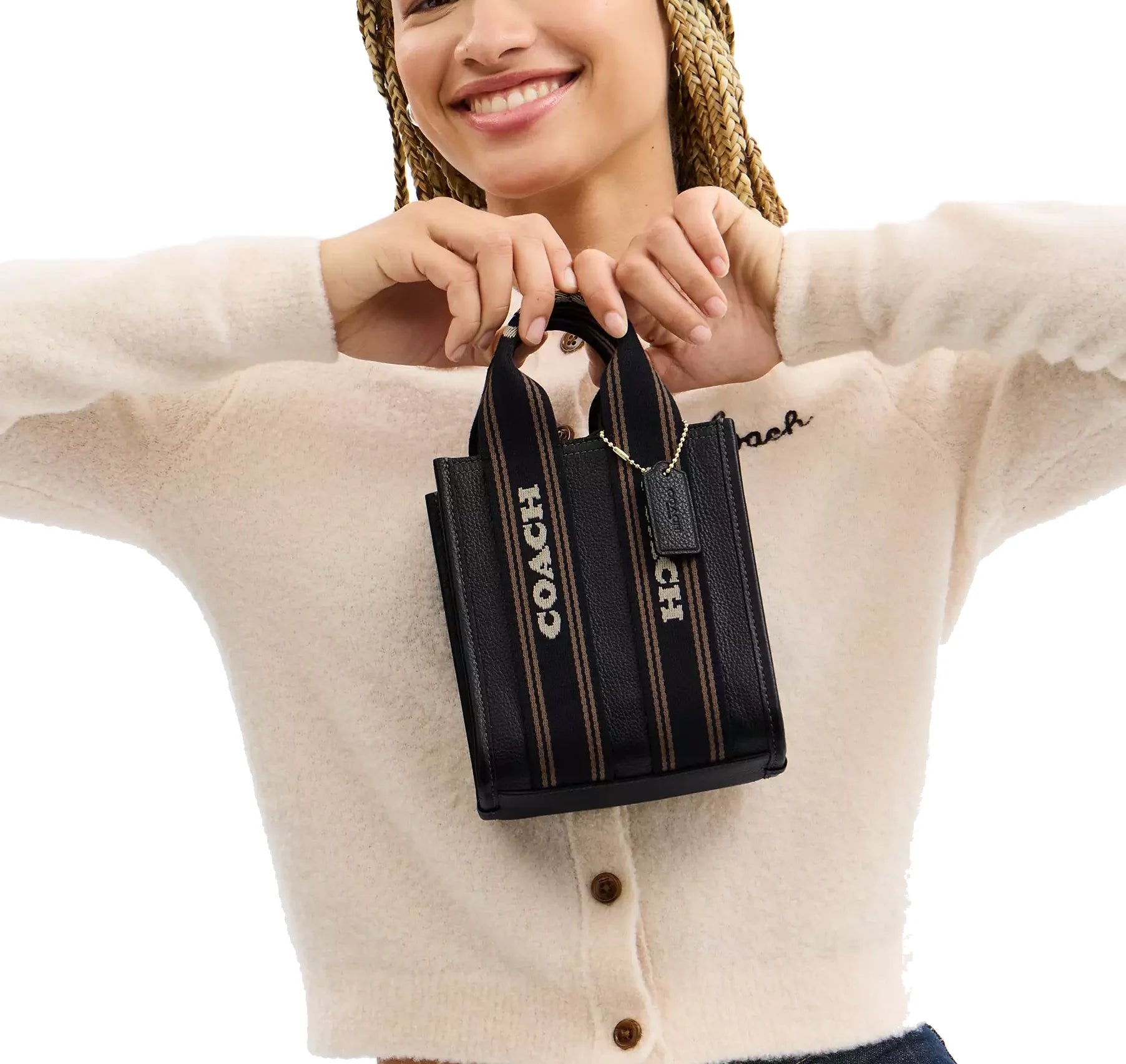 Şıklığı ve işlevselliği bir arada sunan bu Coach mini tote çanta, günlük kombinlerinizi tamamlamak için ideal bir parçadır. Deri detaylarıyla lüks bir görünüm kazandırırken, kompakt ölçüleri sayesinde hafif ve pratik kullanım sağlar.