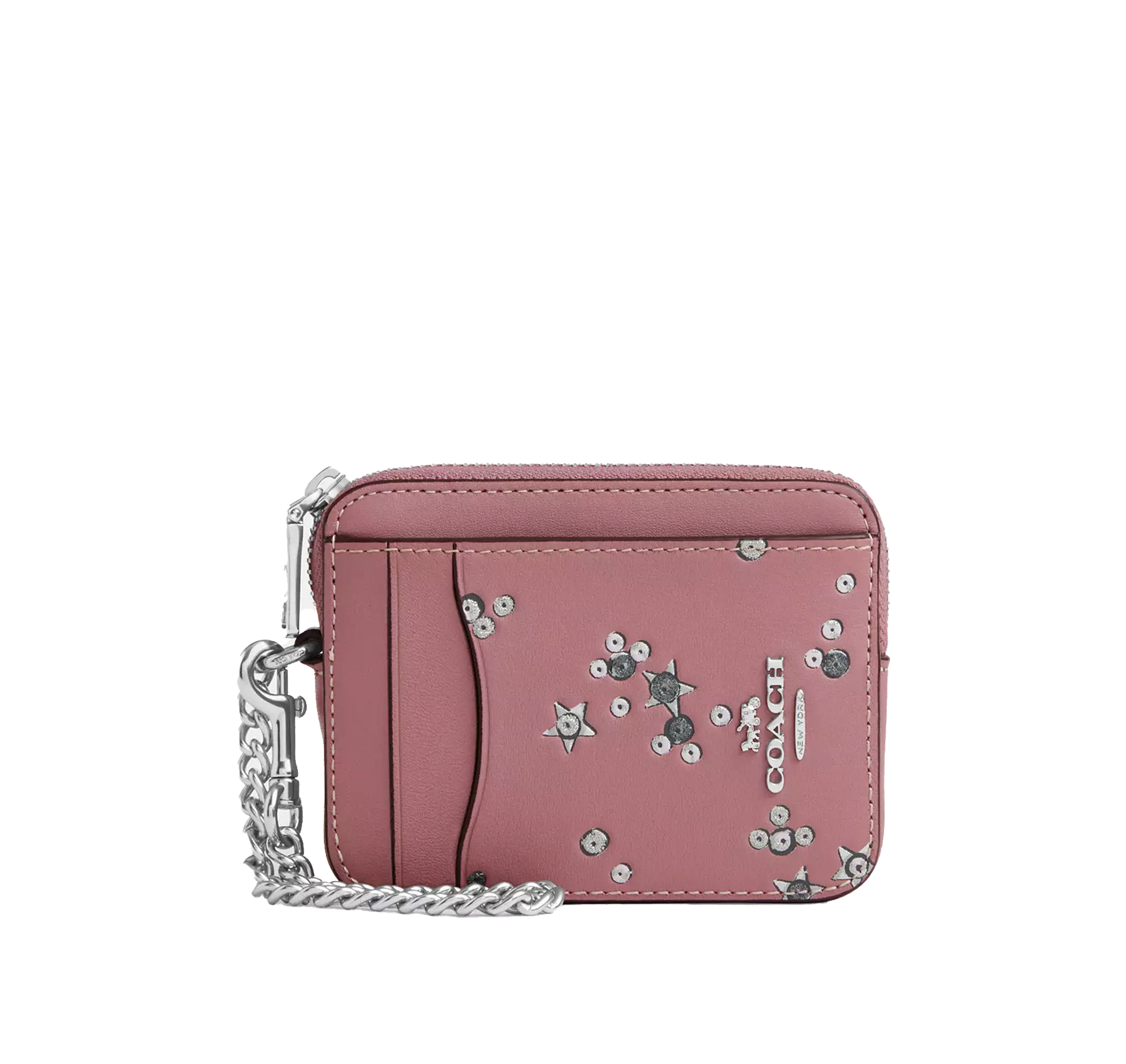 Coach Women's Zip Card Case With Star Print Pink/Silver