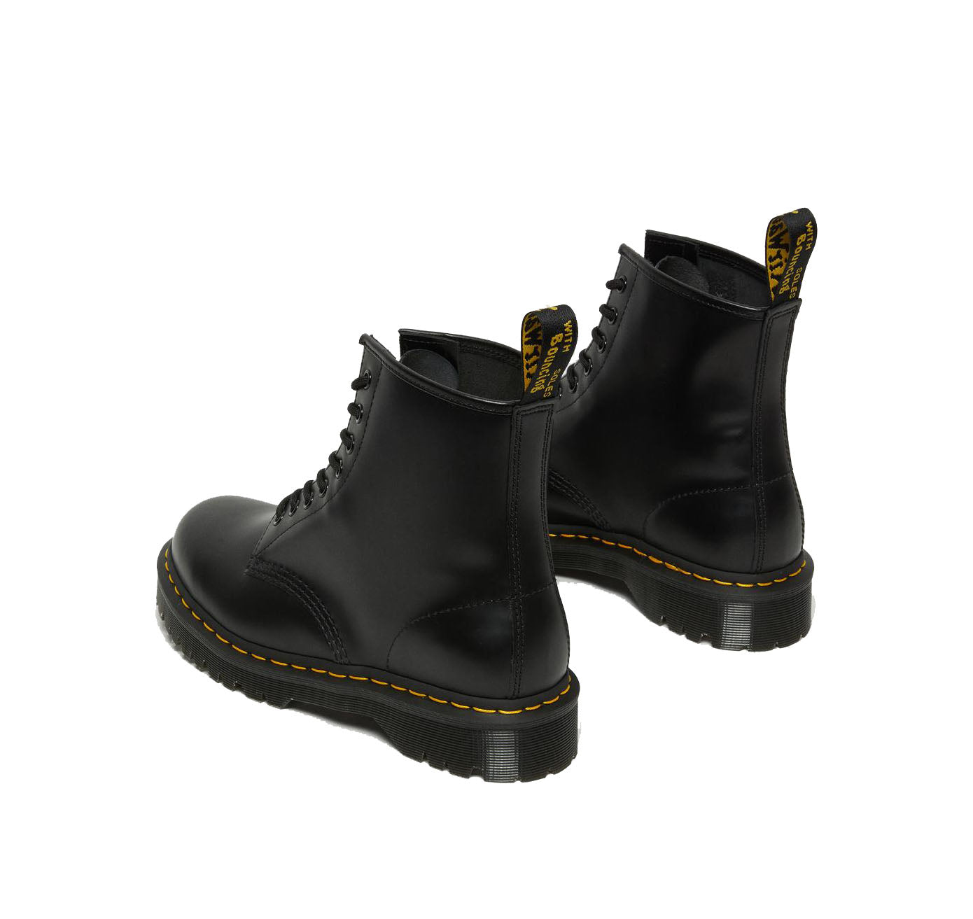 • PVC dış tabanı sarı dikişle sabitlenmiş ve AirWair topuk halkası ile etiketlenmiştir.