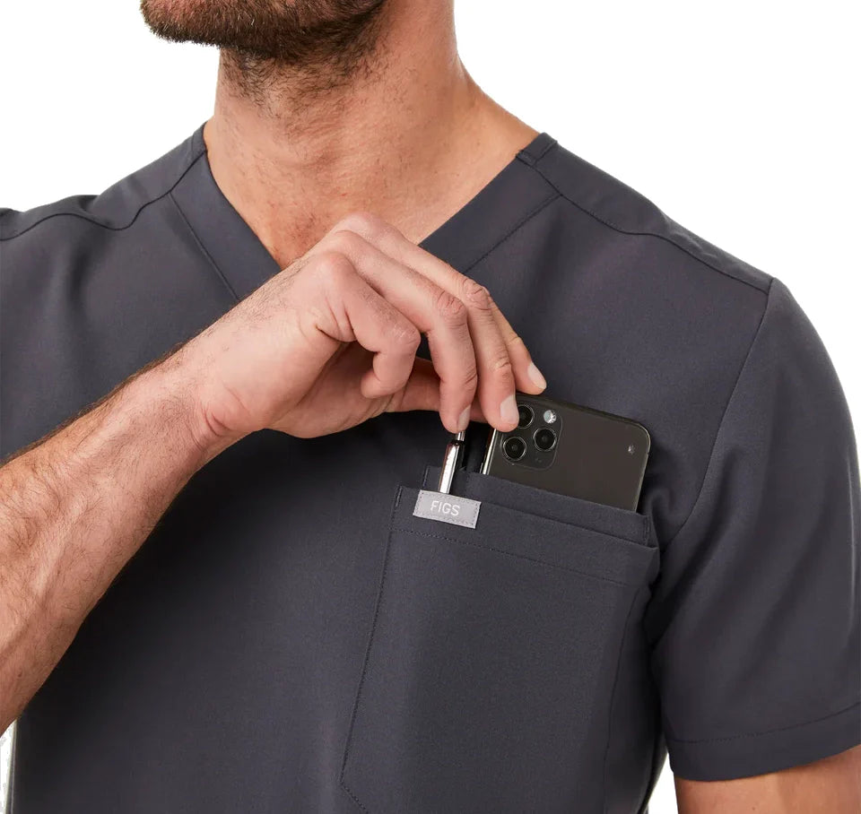 FIGS Men's Leon Three Pocket Scrub Top Charcoal