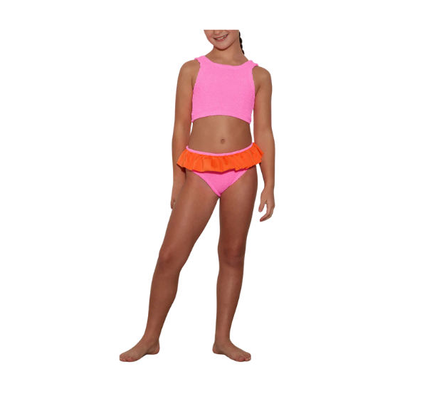 HUNZA G Kids Duo Olive Bikini Bubblegum/Orange