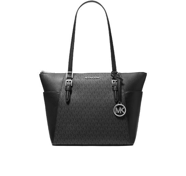 Michael Kors Women's Charlotte Large Logo and Leather Top-Zip Tote Bag Black