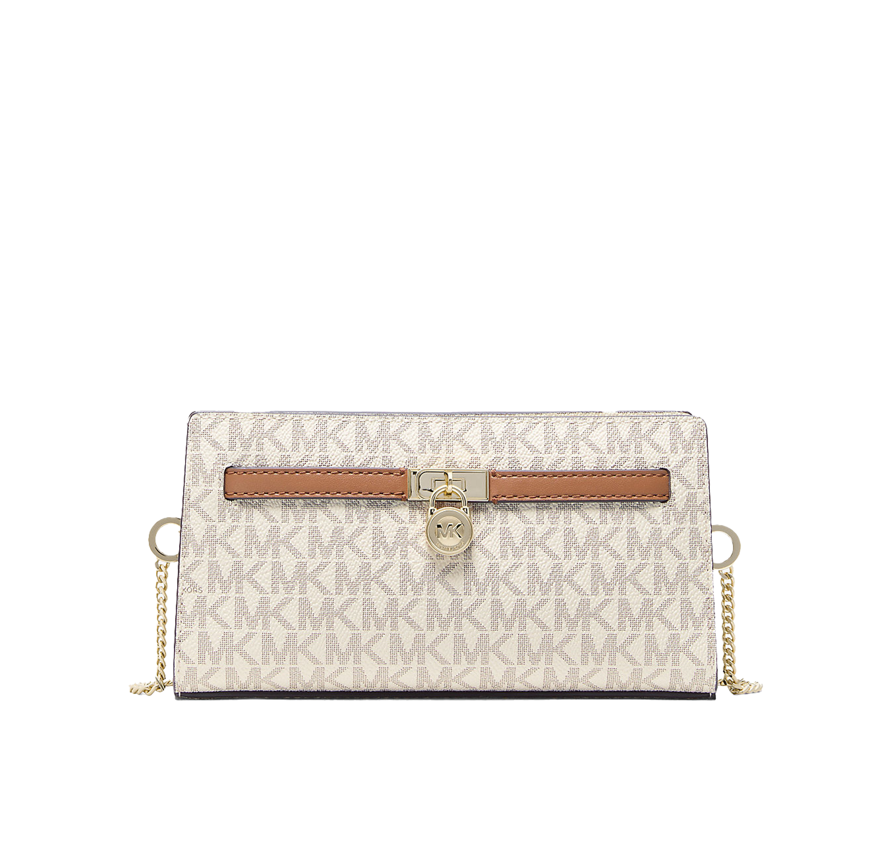 Michael Kors Women's Hamilton Moderne Extra-Small Signature Logo Convertible Crossbody Bag Vanilla/Acorn/Gold