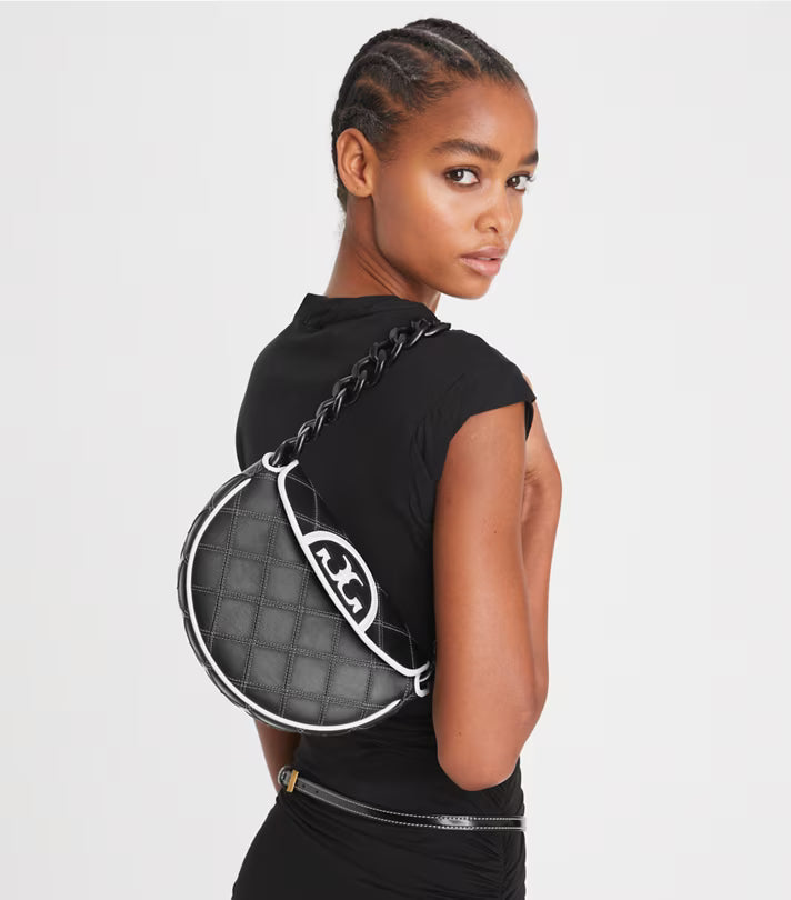 Tory Burch Women's Mini Fleming Soft Crescent Bag Black